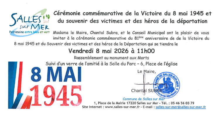 Cérémonie du 08 mai : 11h au Monument aux Morts