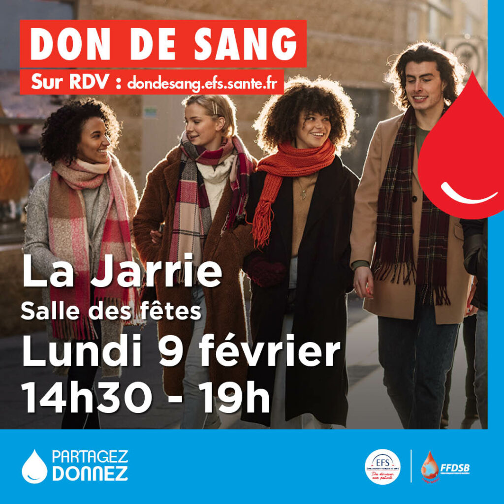 Don de sang : lundi 09/02/2026 à La Jarrie